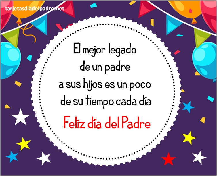 Todos necesitamos un poco de inspiracion no nacemos poetas. Pero lo que si podemos es elegir frase adecuada la que te ayude a sentirte mas cerca de tu padre. Disponemos de frases para todas las genereaciones y todo tipo de familiares. Mensajes de feliz día del padre para enviar a tu padre. Sorprende a tu Papá en su día con nuestra bonita colección de imágenes del día del padre con frases. Selecciona la imagen virtual que más te guste y envíala a tu padre al instante.