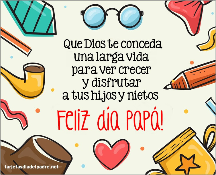 13. Dedicatorias religiosas. Que dios te conceda una larga vida para ver crecer y disfrutar a tus hijos y nietos. Feliz día Papá!