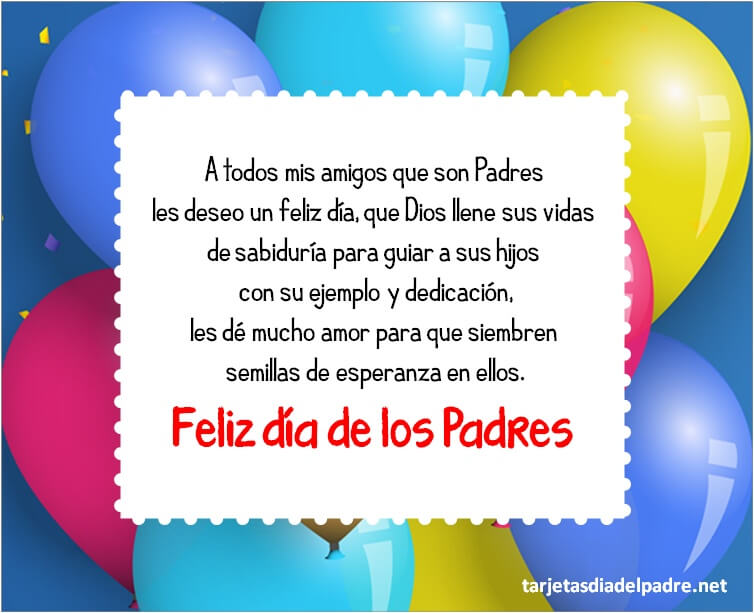 Lo importante es que el contenido de la tarjeta sea sincero y con mucho cariño por eso es importante elegir la frase perfecta ideal para ese amigo querido. Dale una bonita sorpresa a tu amigo en su día con las mejores postales de día del padre. Postales para tu amigo frases para el día del padre. En nuestra galería tienes una amplia variedad de estilos y diseños de Imágenes con frases de felicitaciones. Bonitos textos y pensamientos para dedicar a tu Amigo del alma. Los papás son personas especiales en nuestras vidas y un amigo del alma no se queda atras. También tenemos deseos para los abuelos, los padrastros y para alguien que es como un padre para ti.